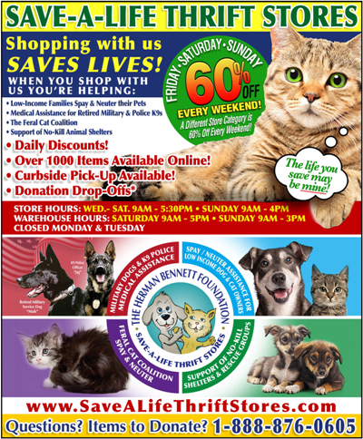 Ventura County Animal Services Our Friends At The Herman Bennett Foundation Are Holding A 60 Off Weekend Blowout At Their Save A Life Thrift Stores Proceeds Benefit Low No Cost Spay And Neuter